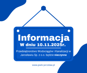W dniu 10.11.2025r Przedsiębiorstwo Wodociągów i Kanalizacji w Jarosławiu Sp. z o.o. będzie nieczynne