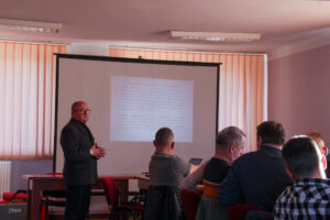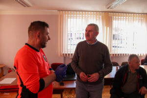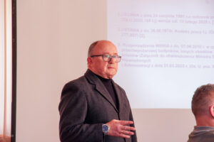 Z kolei szkolenie z zakresu ochrony przeciwpożarowej poprowadził pan Bogusław Mazur, specjalista ds. OC i PPOŻ. PWiK Jarosław Sp. z o.o., omawiając zasady postępowania w przypadku pożaru oraz procedury ewakuacyjne.