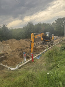 a także trwa instalacja podziemnych przepompowni ścieków, zapewniających prawidłowe ciśnienie i kierunek przepływu.