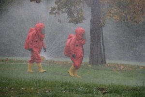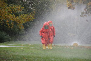 Wspólne działania pozwoliły na wymianę doświadczeń oraz praktyczne sprawdzenie procedur obowiązujących w przypadku zagrożeń chemicznych.