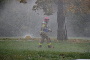 W treningu uczestniczyli pracownicy Przedsiębiorstwa Wodociągów i Kanalizacji w Jarosławiu oraz strażacy z Komendy Powiatowej Państwowej Straży Pożarnej w Jarosławiu.